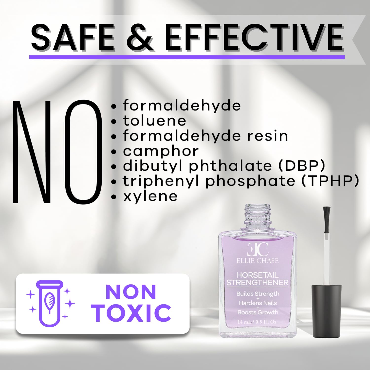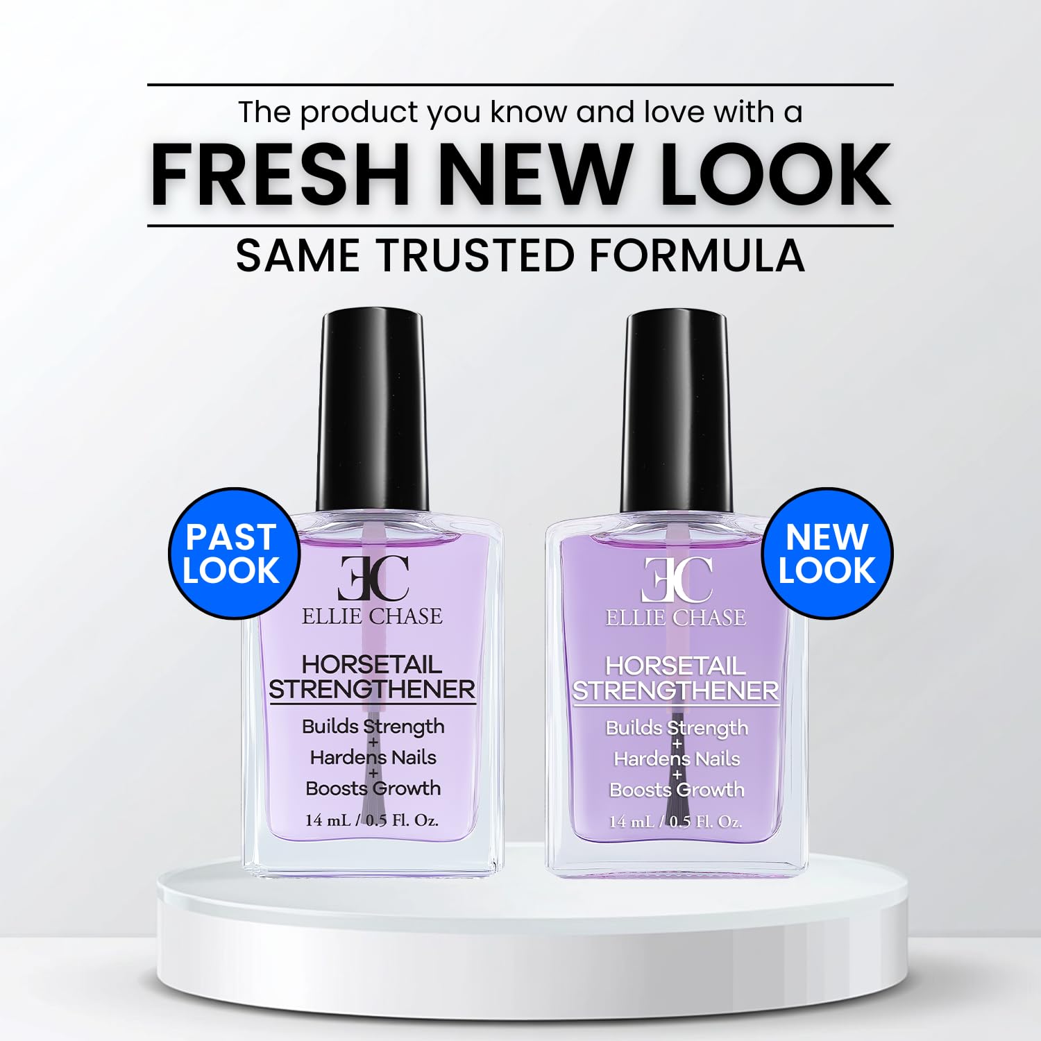 Ellie Chase Horsetail Nail Strengthener, Growth, Hardener, Repair Treatment Polish 0.5 OZ/Help Splits, Breaks, Thin, Weak, Chipped, Damaged, Cracked, Peeling Nails/Grow Strong Hard Thicker Nails