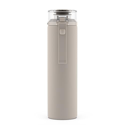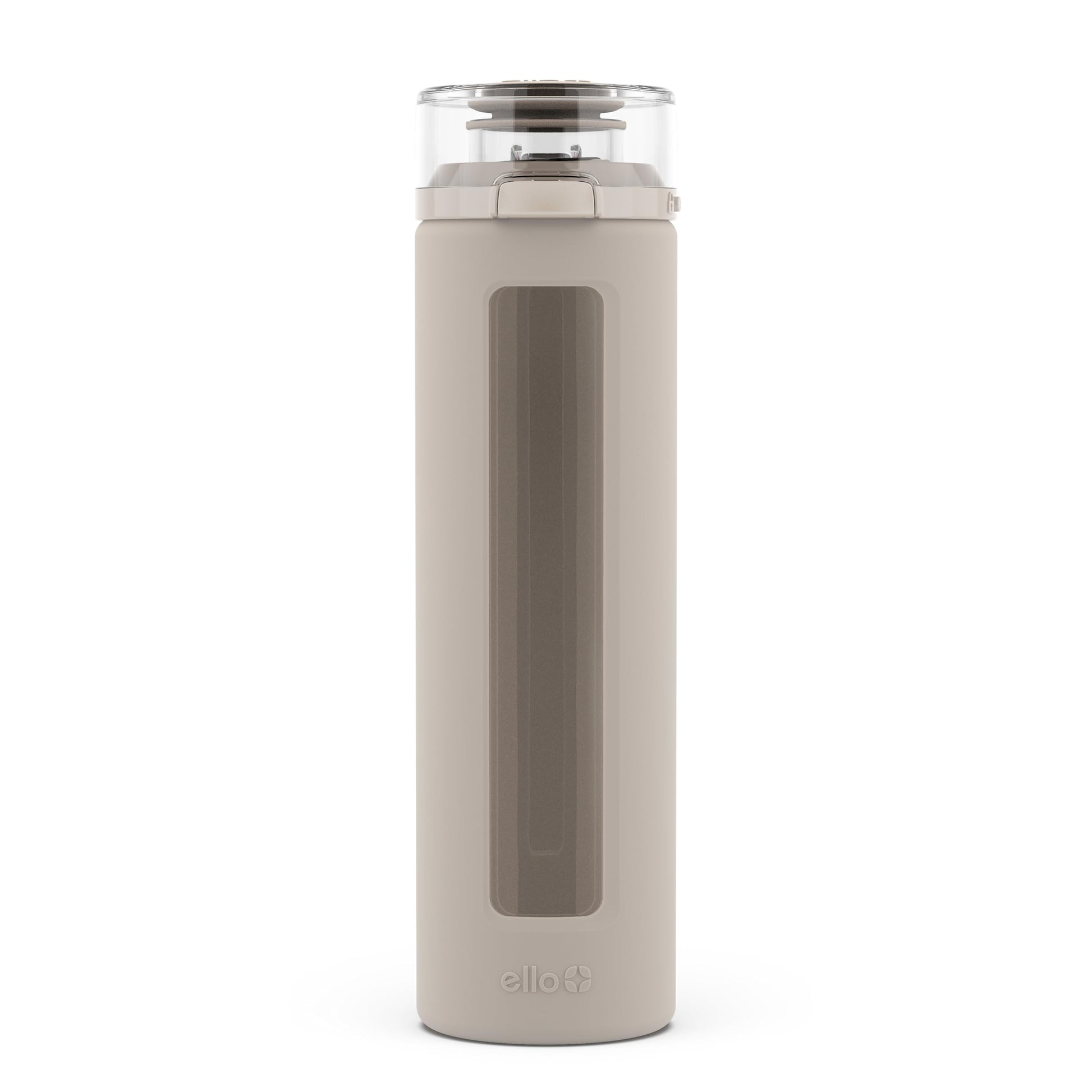 Ello Syndicate 20oz Reusable Glass Water Bottle with One-Touch Leak Proof Flip Lid, Protective Non-Slip Silicone Sleeve, Carry Loop for Coffee, Tea and Water, BPA-free, Dishwasher Safe, Sand