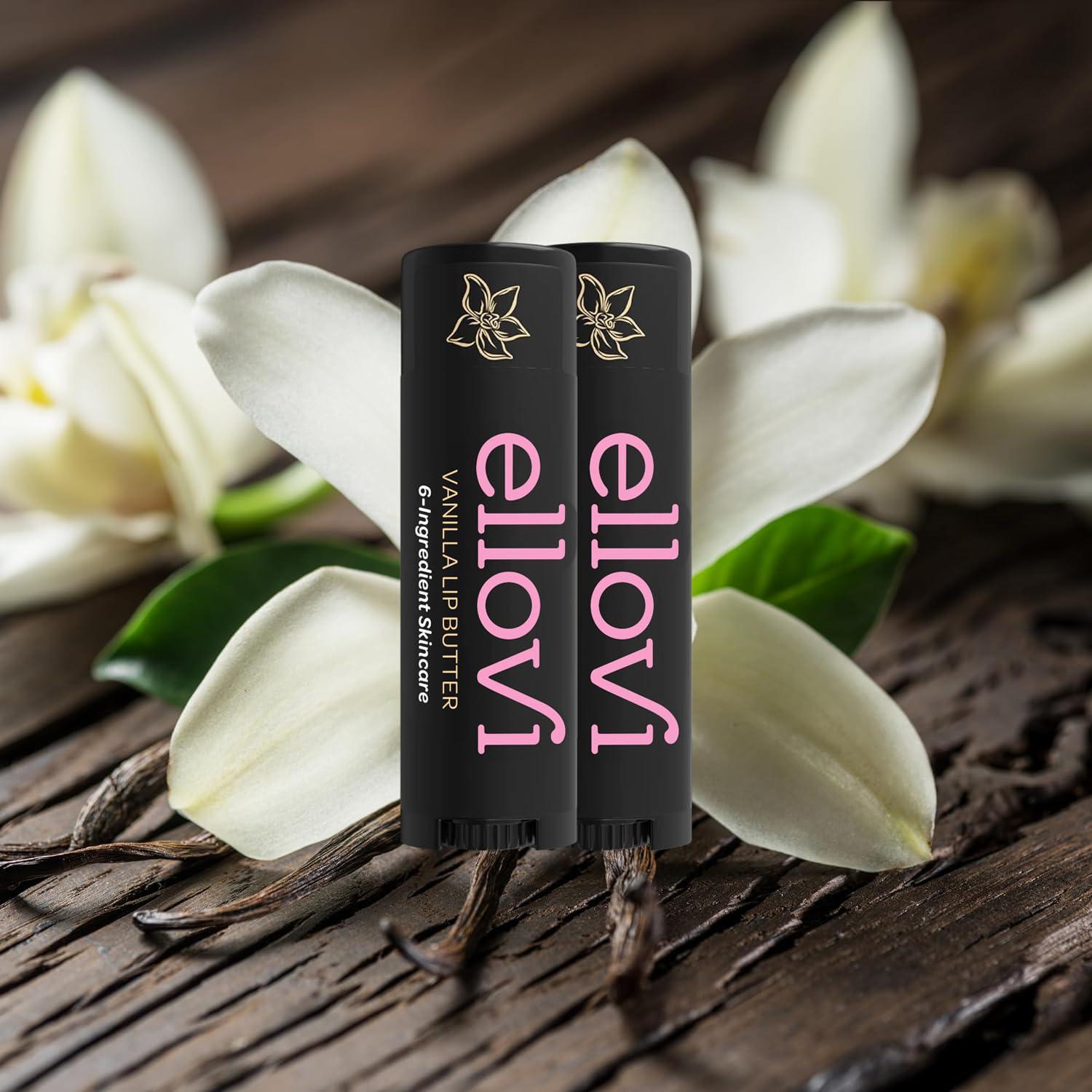 Ellovi Natural Lip Butter Lip Balm - Vanilla - Pure Enough to Eat - Made With Just 6 Vegan Ingredients - 100% Natural & Organic Moisturizing Lip Care for All Day Hydration (2-Pack)