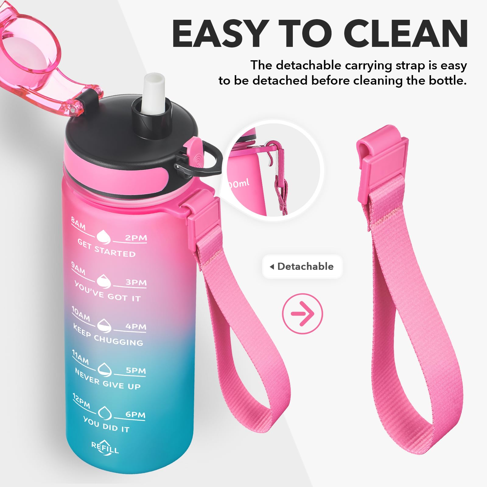 Enerbone 24 oz Water Bottle, Leakproof BPA & Toxic Free, Motivational Water Bottle with Times to Drink and Straw, Fitness Sports Water Bottle with Strap for Office, Gym, Outdoor Sports