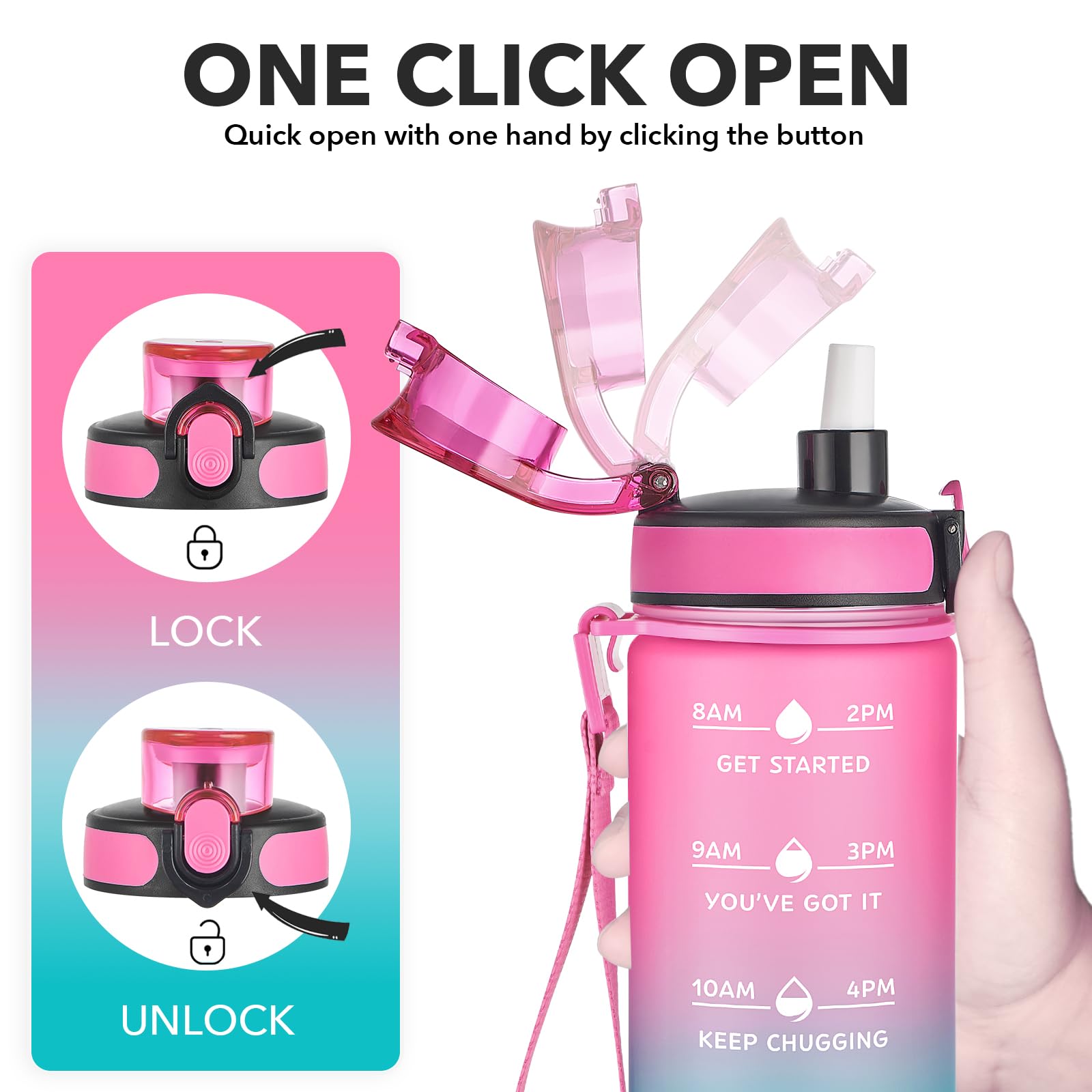 - 【Humanized Design】Water bottles with times to drink can quick open with one hand. The flip-top lid is used a secure lock, making it dust-free and leak-proof. Time water bottle is portable, light, and easy to use.