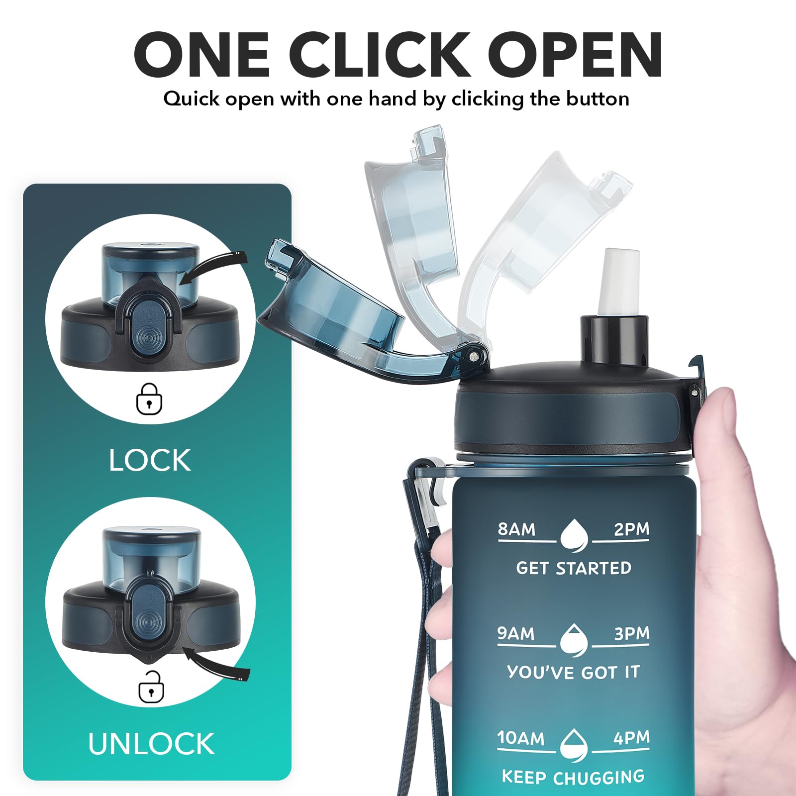 - 【Humanized Design】Water bottles with times to drink can quick open with one hand. The flip-top lid is used a secure lock, making it dust-free and leak-proof. Time water bottle is portable, light, and easy to use.