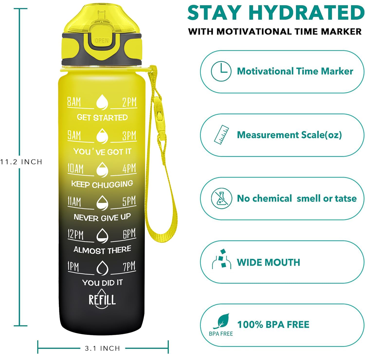 - [Inspirational quotation and time mark] 32 ounces of water bottle, with unique inspiration and time marks, remind you to keep moisture. Capacity marks can help you track daily drinking water. The silicone straw allows you to drink water effortlessly. Athletes such as athletes and white -collar workers.
