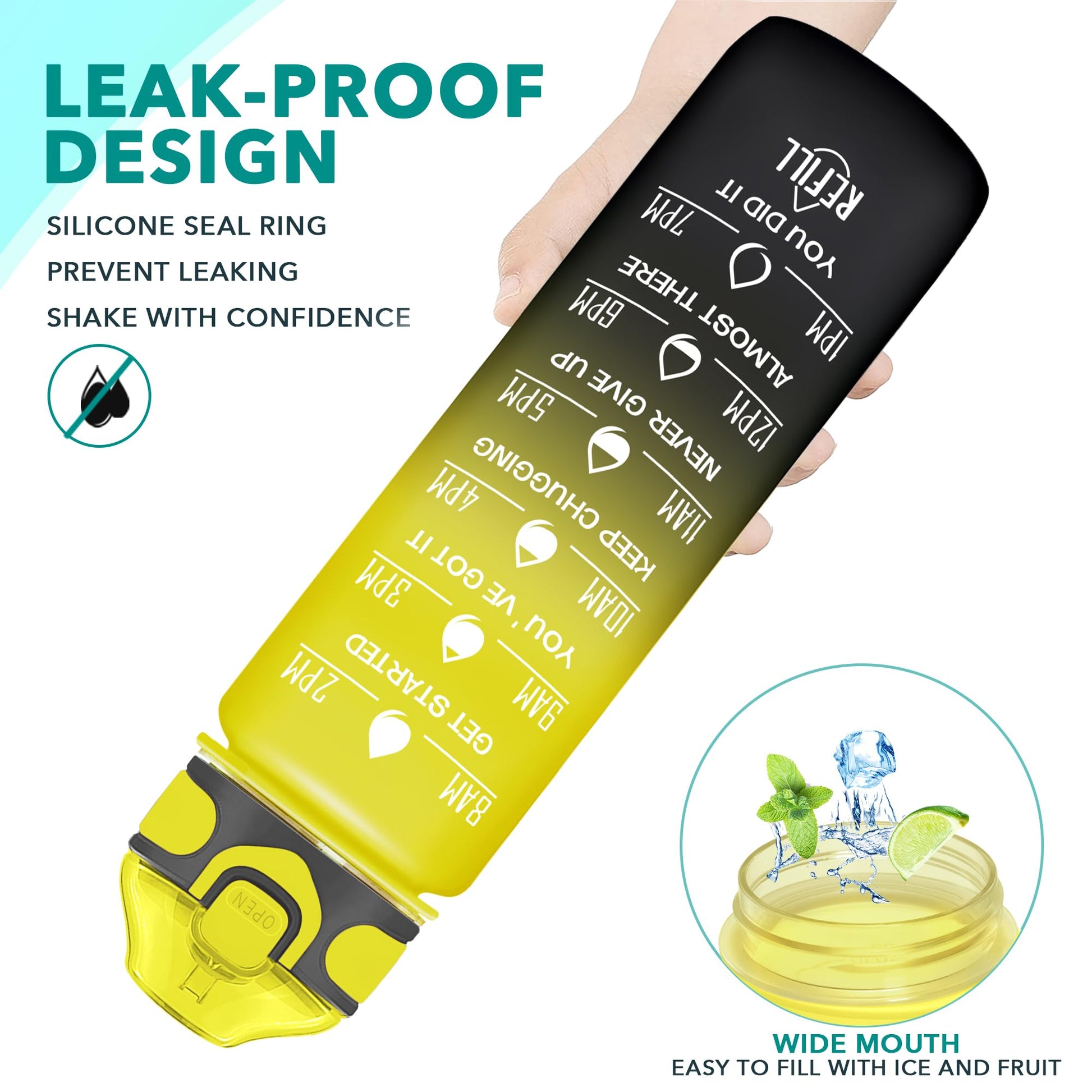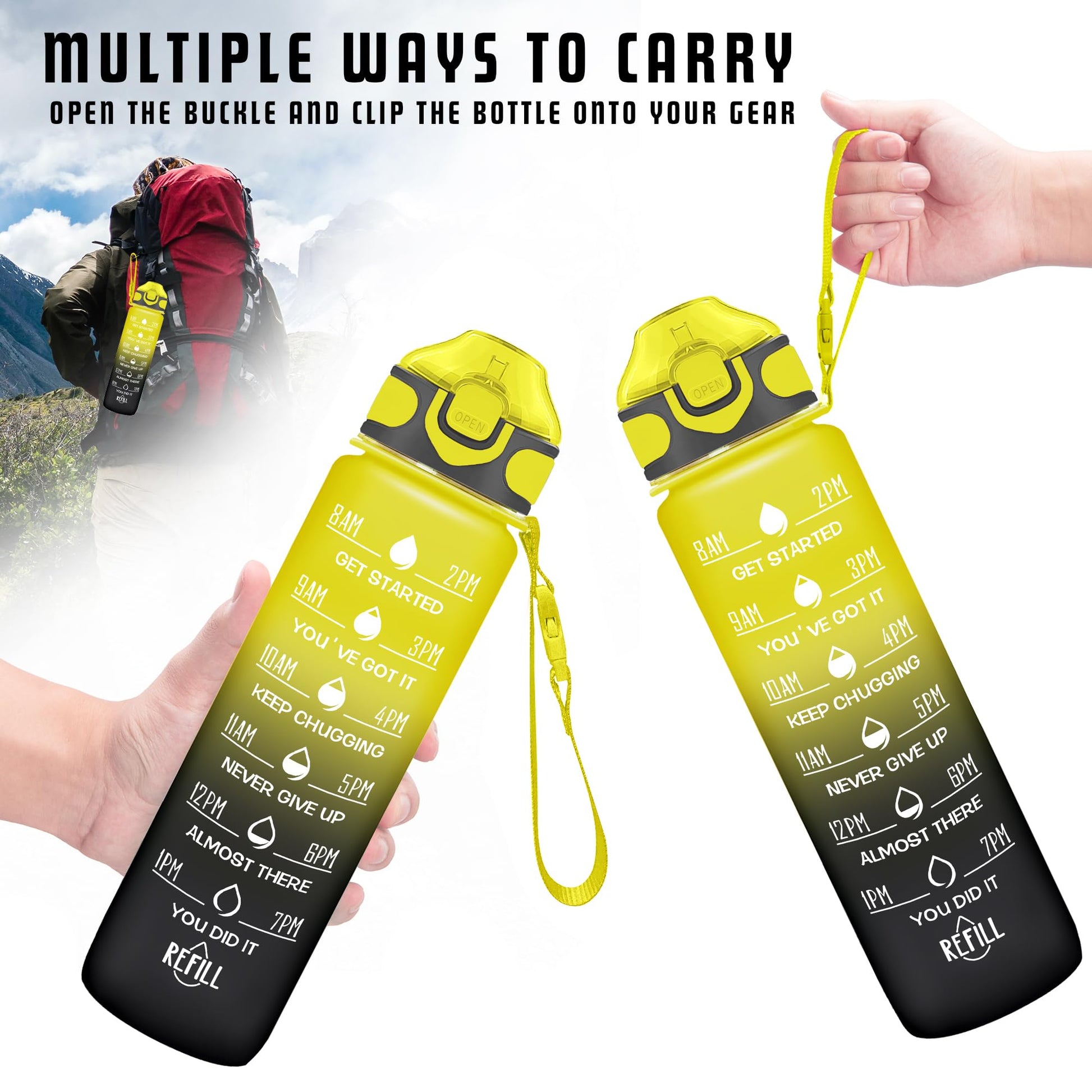 Enerbone 32 oz Drinking Water Bottle with Times to Drink and Straw, Motivational with Carrying Strap, Leakproof BPA & Toxic Free, Ensure You Drink Enough Water for Fitness Gym Outdoor