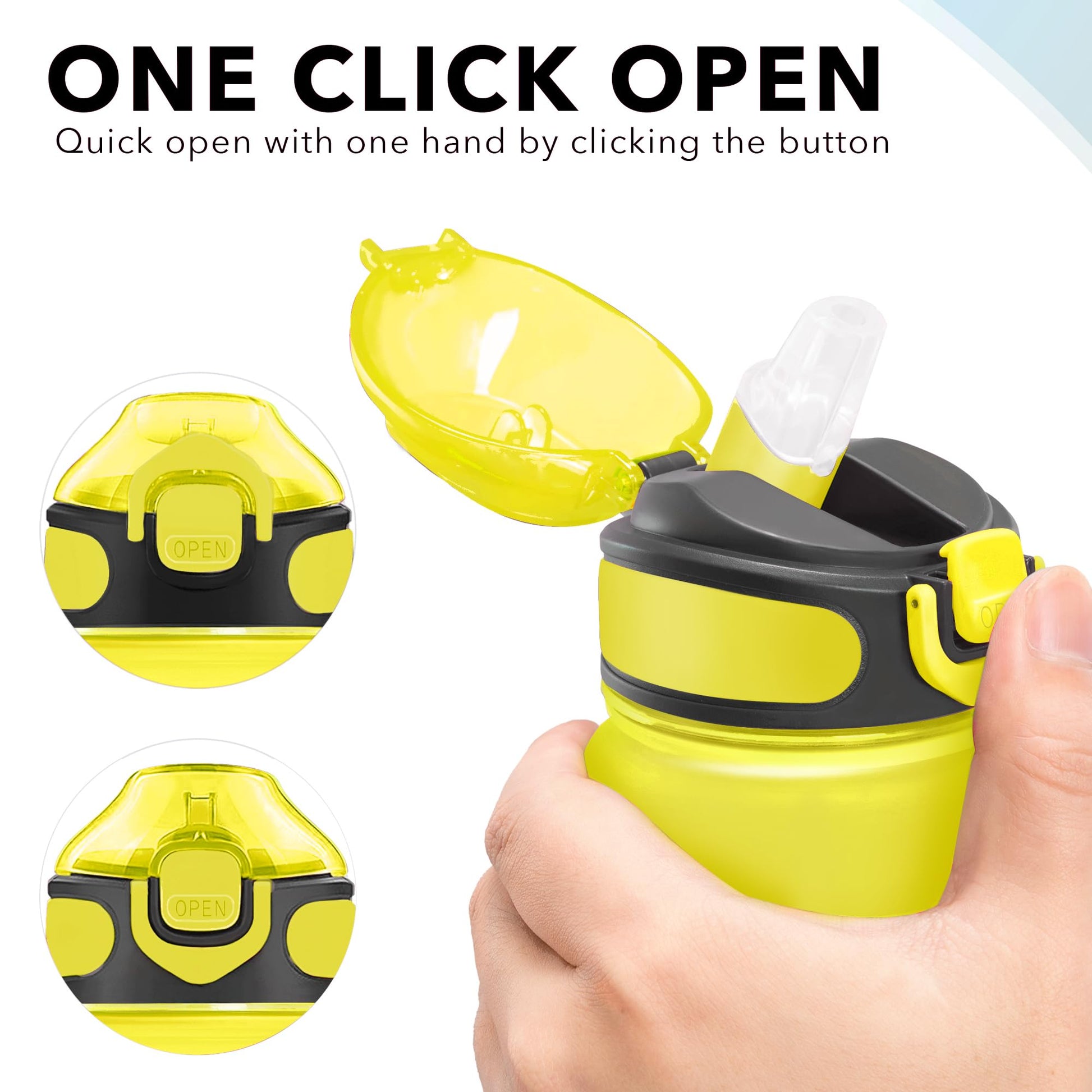 - [Humanized design] Open one hand, click the button to enter the water. Very suitable for boys and girls and all ages. The flip cover is designed withlock design, dustproof and leakage. Using scrubs with water cups can be better held.