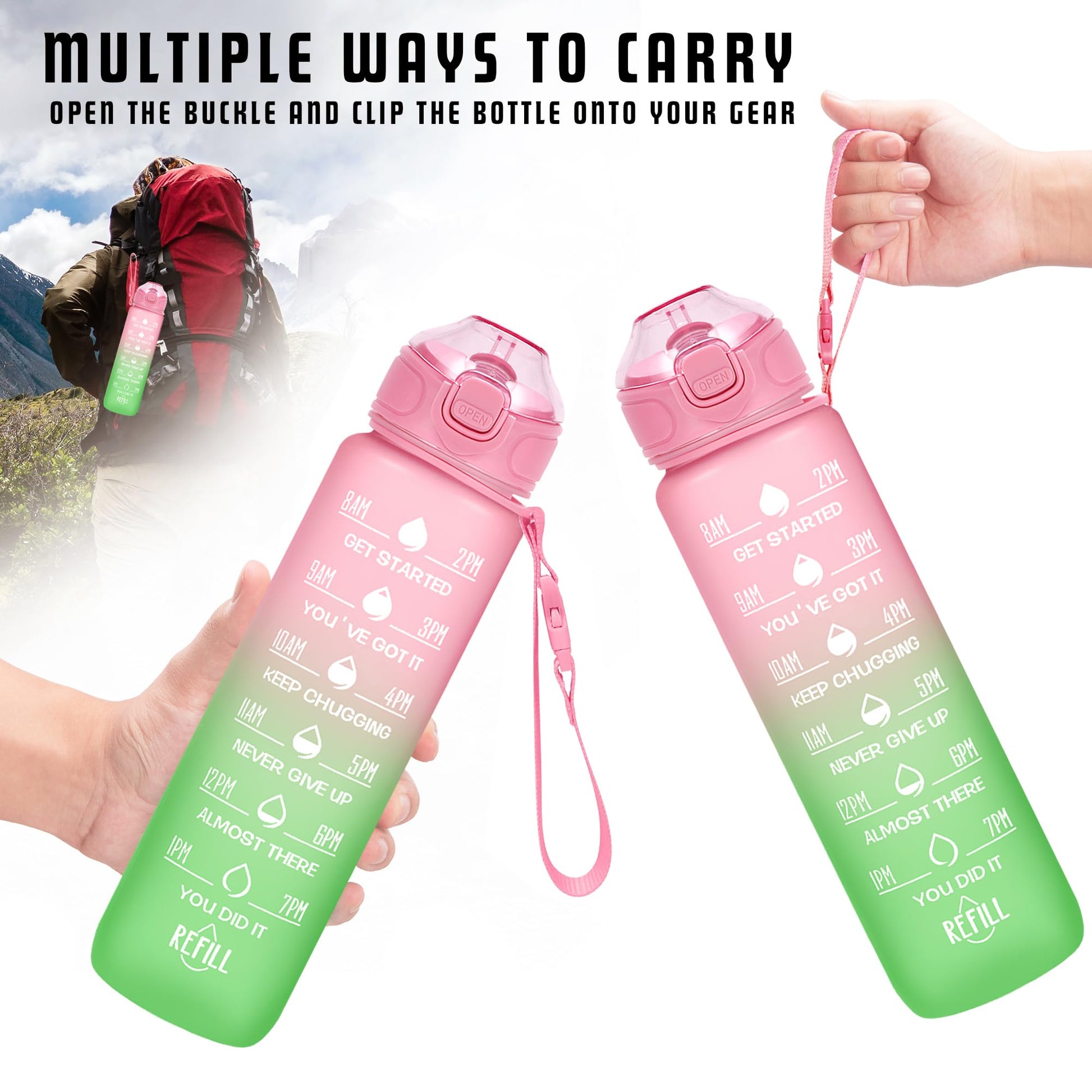 Enerbone 32 oz Drinking Water Bottle with Times to Drink and Straw, Motivational with Carrying Strap, Leakproof BPA & Toxic Free, Ensure You Drink Enough Water for Fitness Gym Outdoor