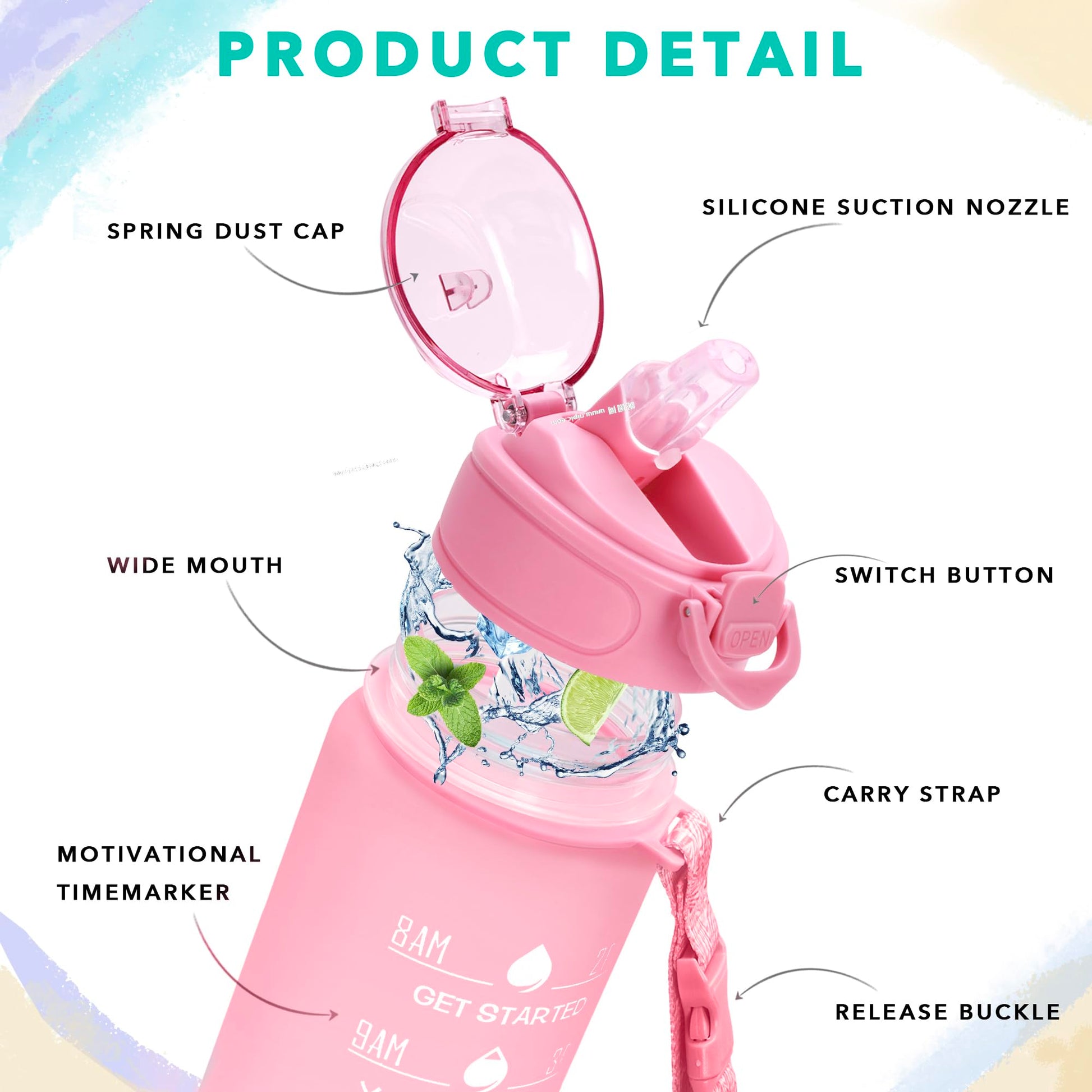 Details: 32oz Motivational Water Bottles with Time to Drink, Large Daily Water Bottle with Portable Top Lid & Removable Straw, Leakproof BPA Free Water Bottle with Time Maker for Fitness and Outdoor Sports