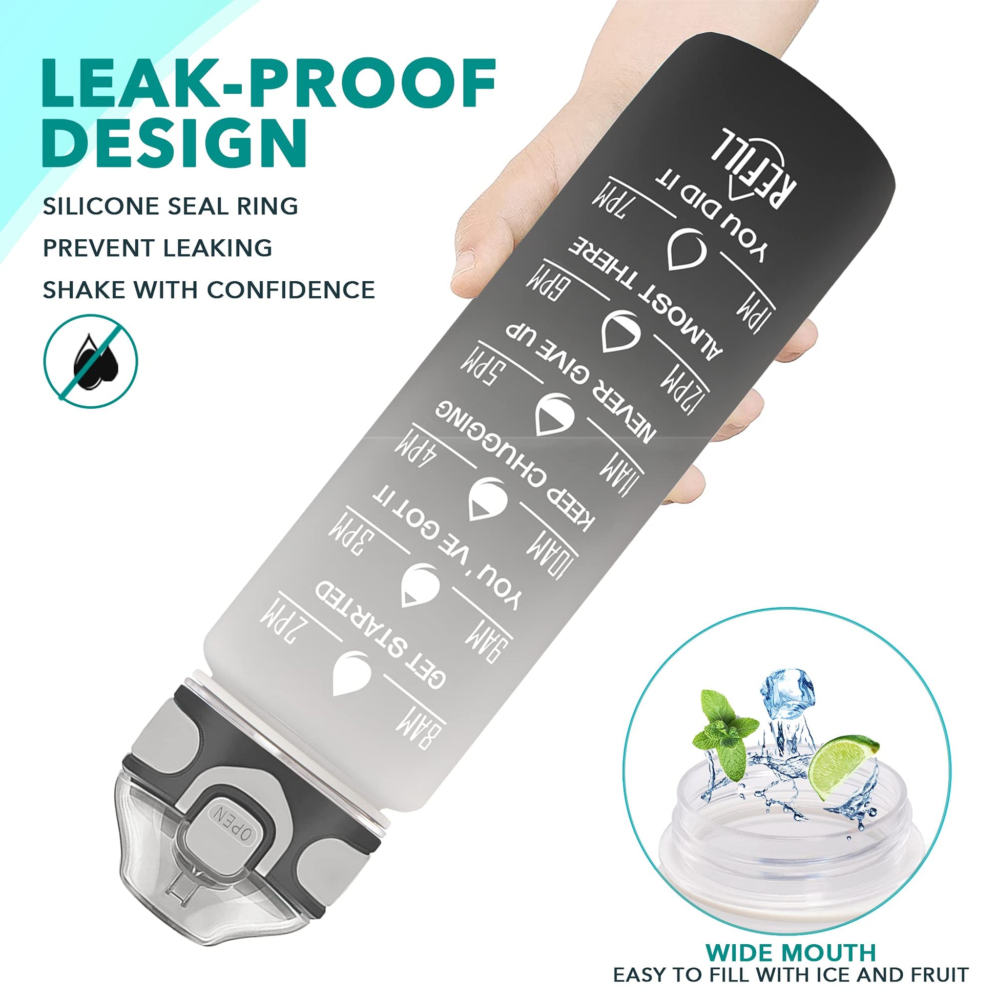 Details: 32oz Motivational Water Bottles with Time to Drink, Large Daily Water Bottle with Portable Top Lid & Removable Straw, Leakproof BPA Free Water Bottle with Time Maker for Fitness and Outdoor Sports