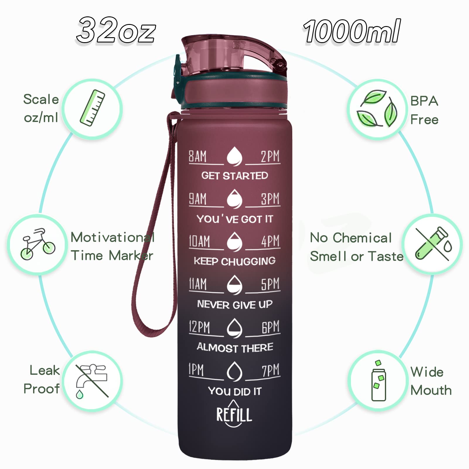 - 【Stay Motivated and Hydrated】32 oz water bottle with unique quote and time marker are inspirational, convenient for tracking your daily water intake and reminding you of being hydrated. Drinking bottles is suitable for any activities.