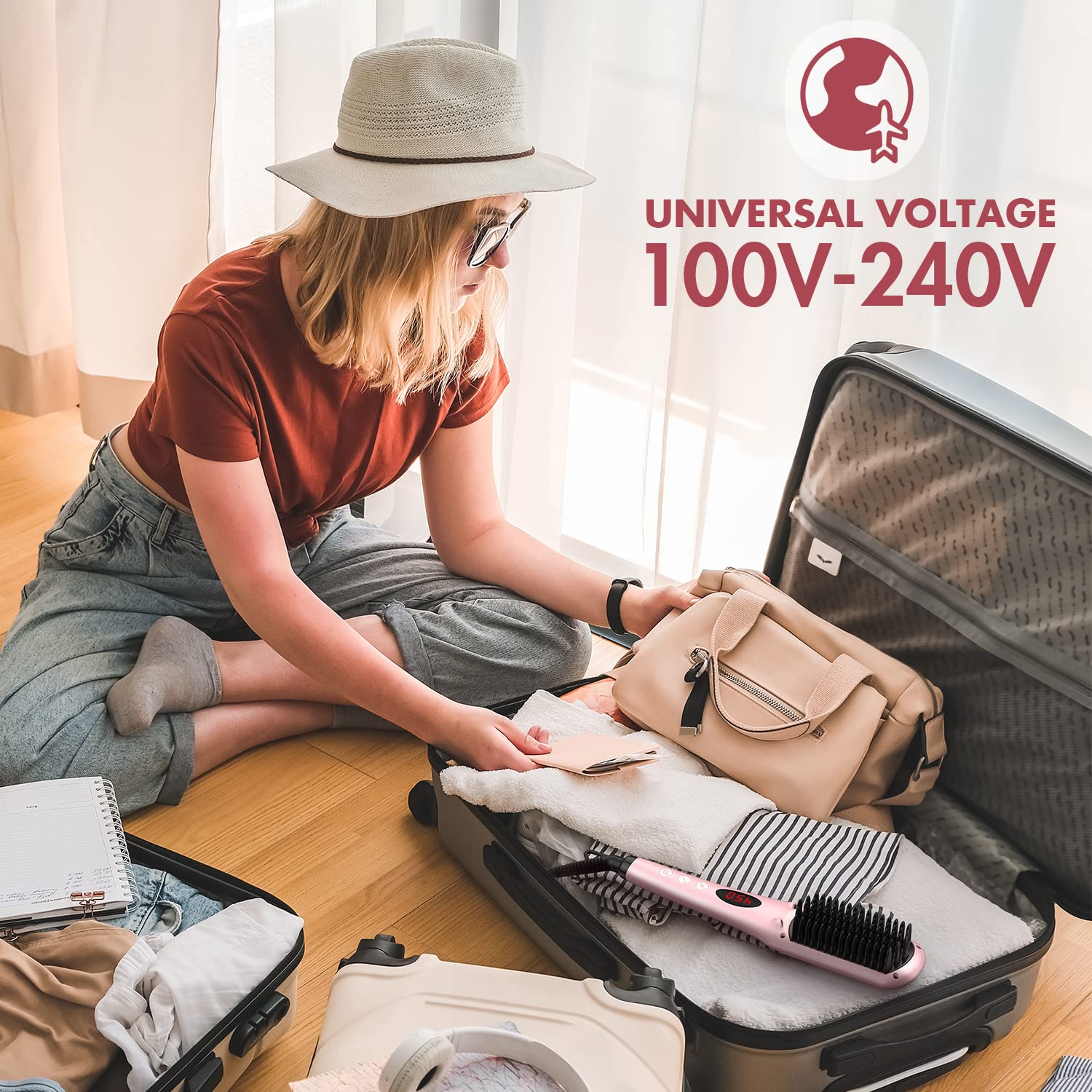 Enhanced Hair Straightener Heat Brush by MiroPure, 2-in-1 Ceramic Ionic Straightening Brush, Hot Comb with Anti-Scald Feature, Auto Temperature Lock & Auto-Off Function (Pink) 4 Piece Set