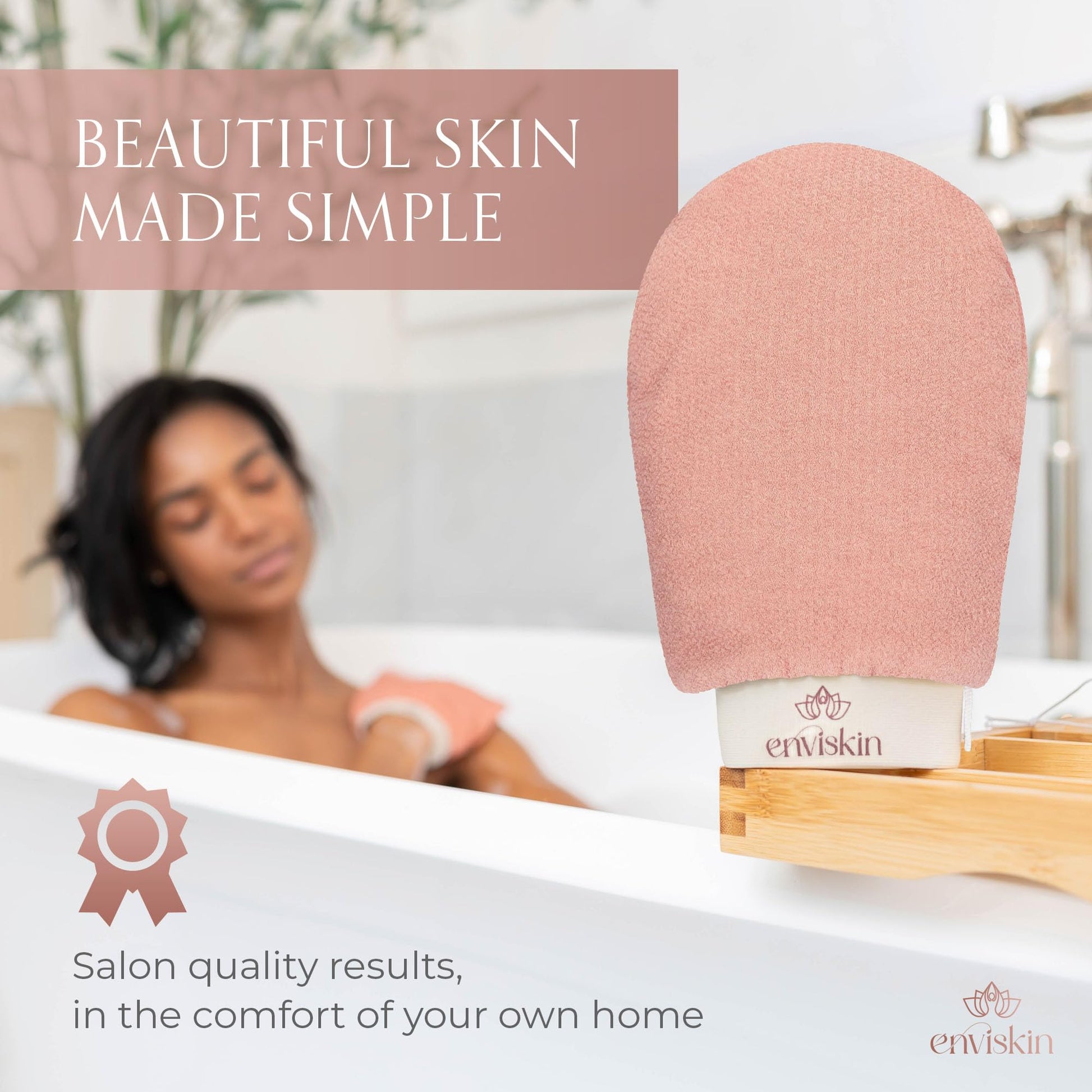 Enviskin Dermaglow Exfoliating Gloves – Premium Plant-Based Viscose Double-Layer Mitt for Deep Body Exfoliation, Dead Skin Removal, Self-Tan Eraser, Smooth Soft Skin