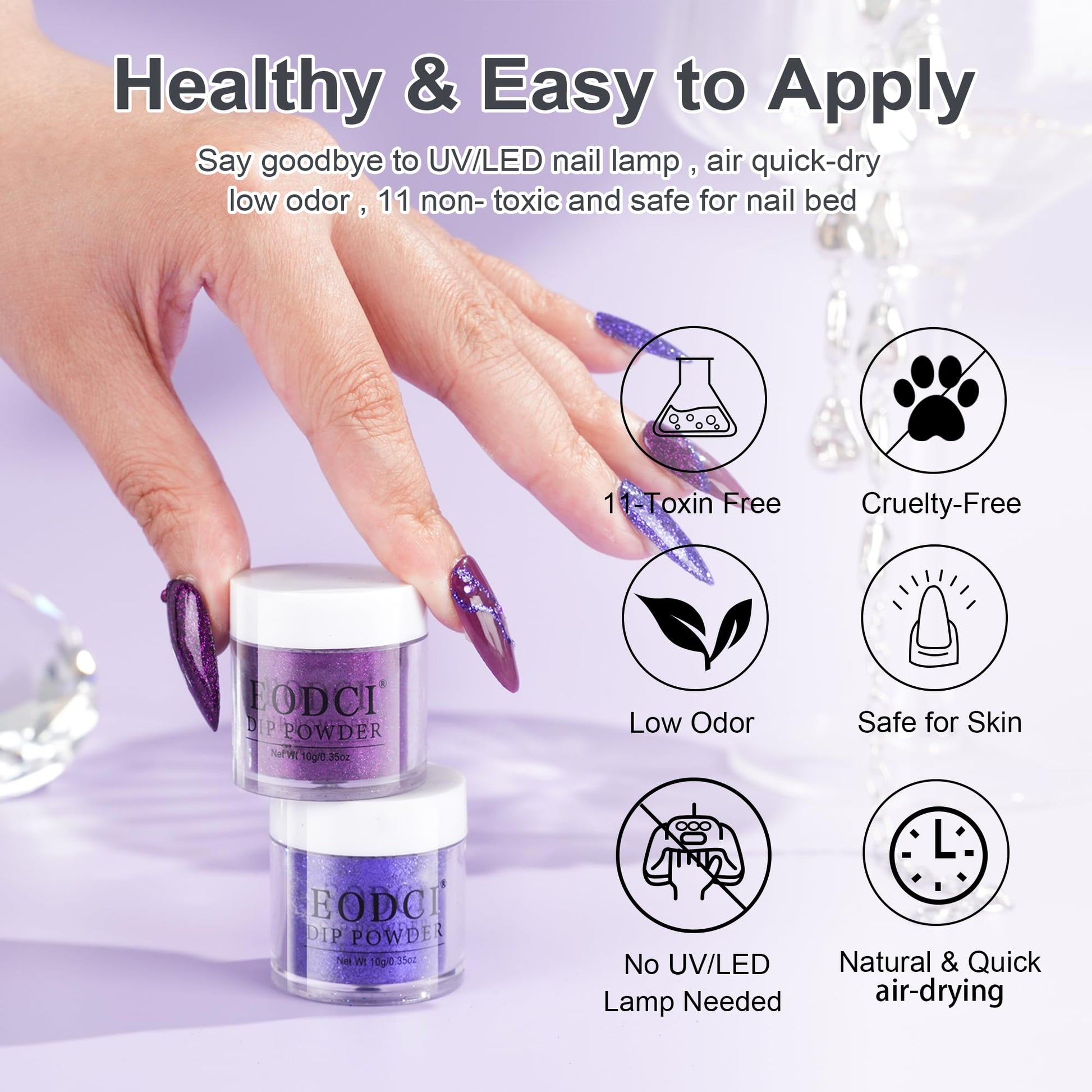 - 【No Lamp Needed】Eodci Nail Dipping Powder does not require UV/LED light to cure, is skin friendly while avoiding skin darkening and damage, safe and easy to use, suitable for beginners and professional nail salons.