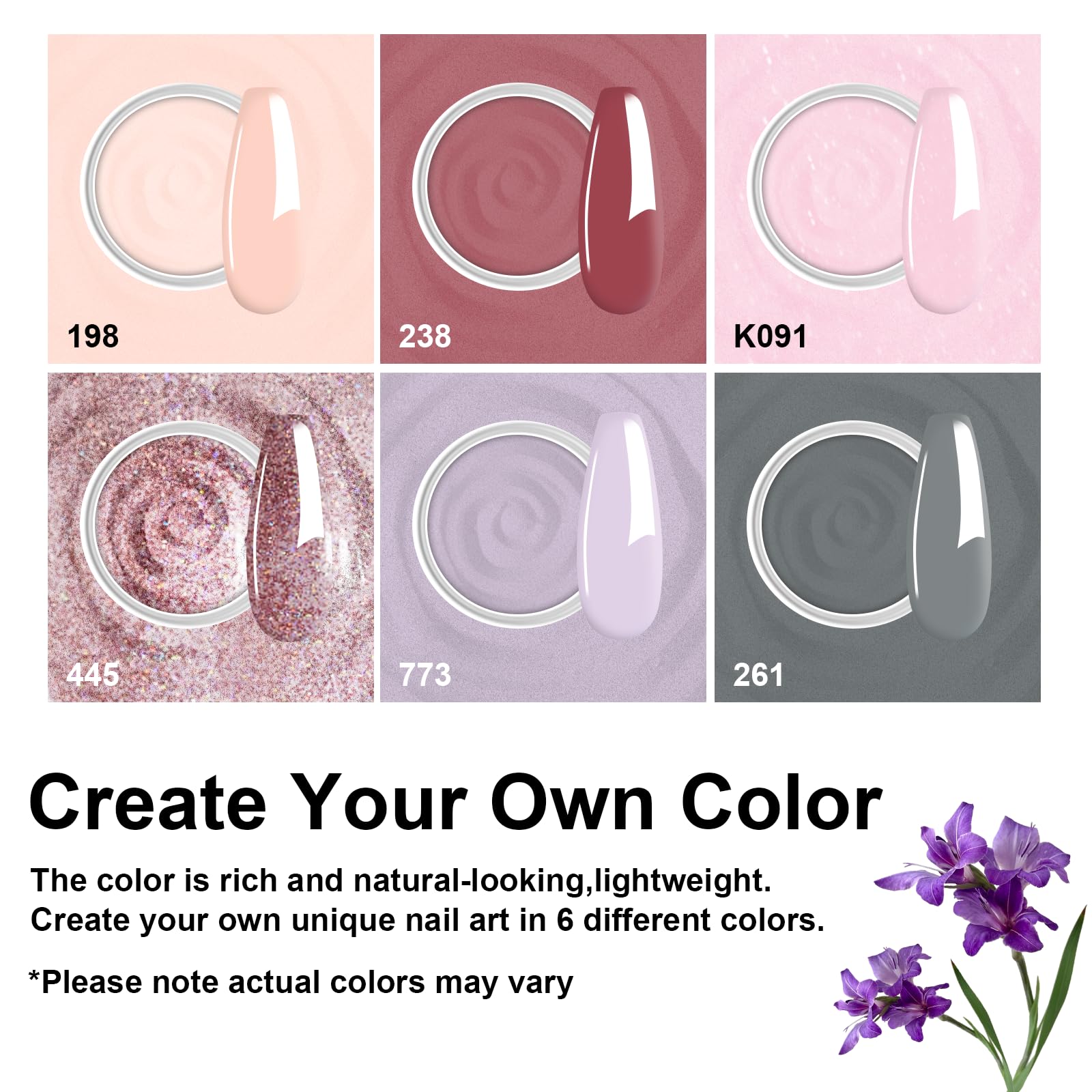 - 【What You Get】Dip Nails Powder Starter Kit including 6*0.35oz dip powder, 4*0.5floz dip liquid set, 1* Nail Brush, 1*Nail file. A kit containing all your nail art needs.