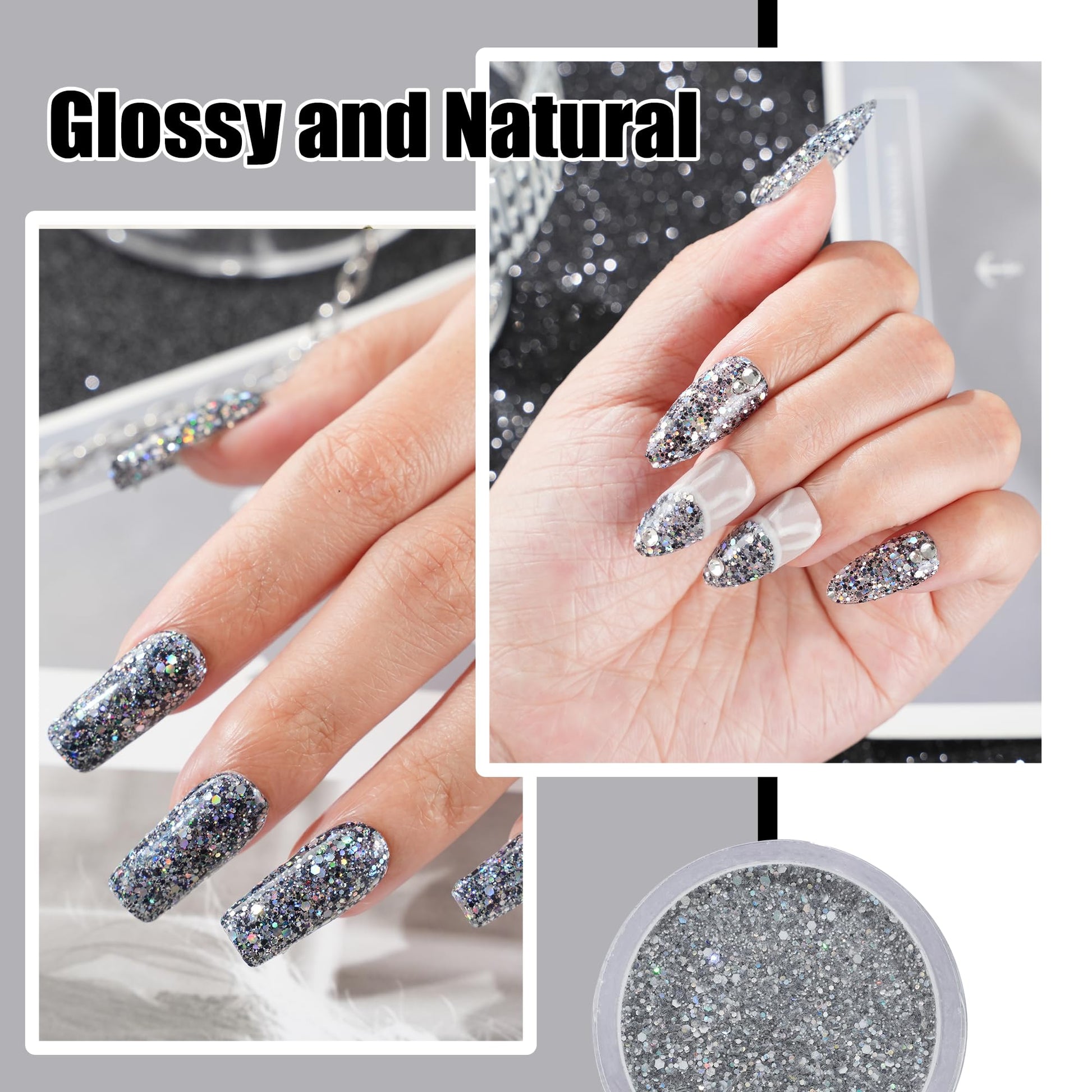 EODCI Glitter Black Dip Powder, 1OZ Neutral Nail Dip Powder for Long-lasting 28 Days+ Dip Nail Art French Manicure Nail Starter & Professional Home DIY Salon Use