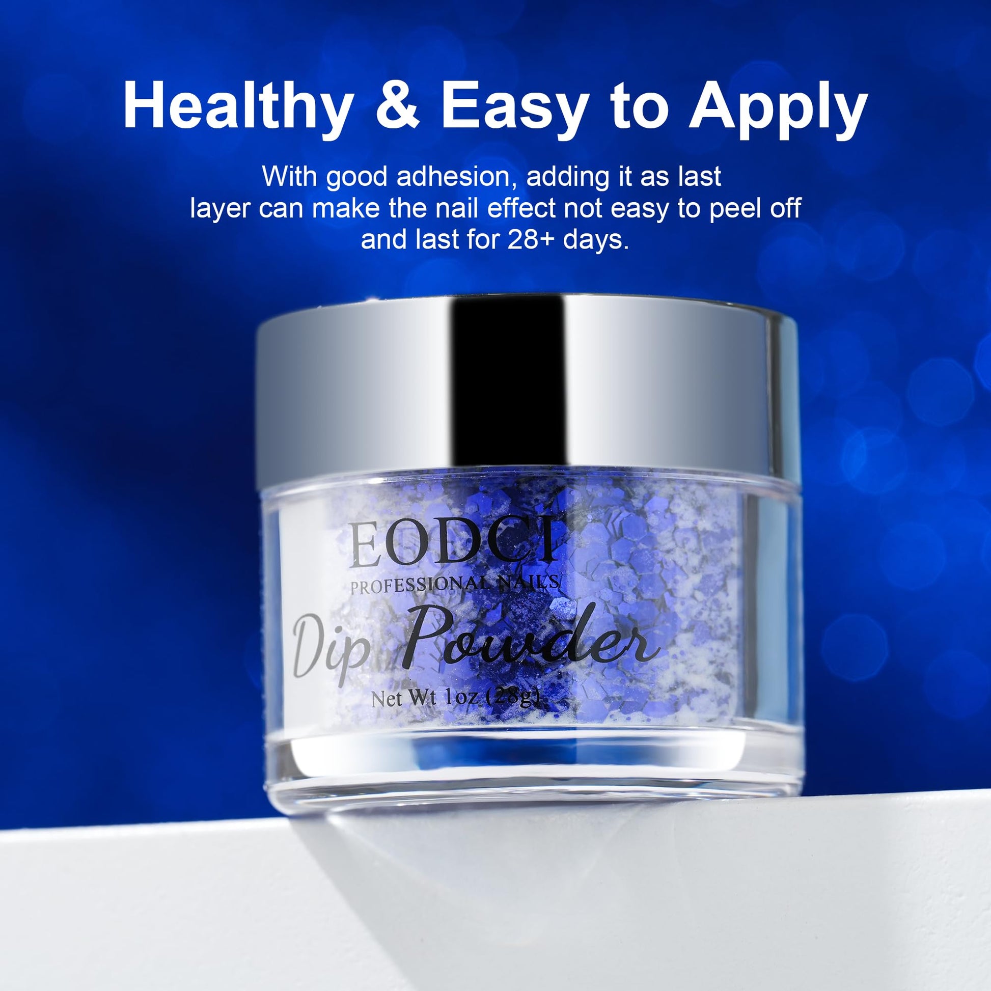 EODCI Glitter Dark Blue Dip Powder, 1 Oz/28g Nail Dipping for DIY Manicure Salon at Home Easy to Use Nail Dip Powder for Women gift No Needed Lamp Curing