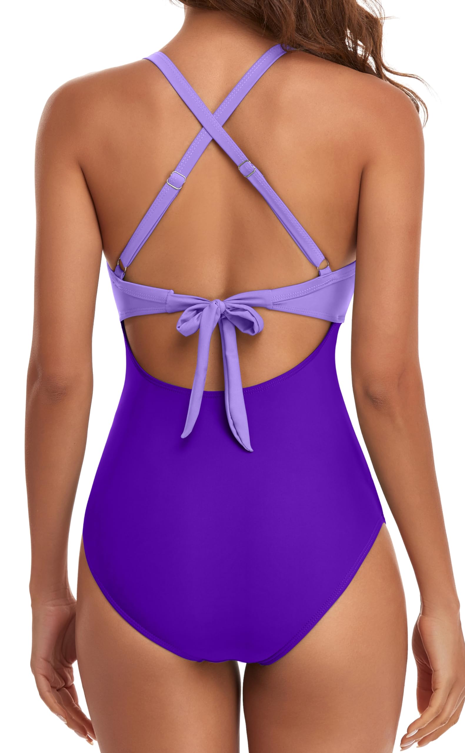 - Criss cross one piece bathing suits: Cutout design on front and back, adds a little flirtiness and fashionable to this classic swimsuit. The back tie knot and adjustable shoulder straps fit your body curves perfectly.