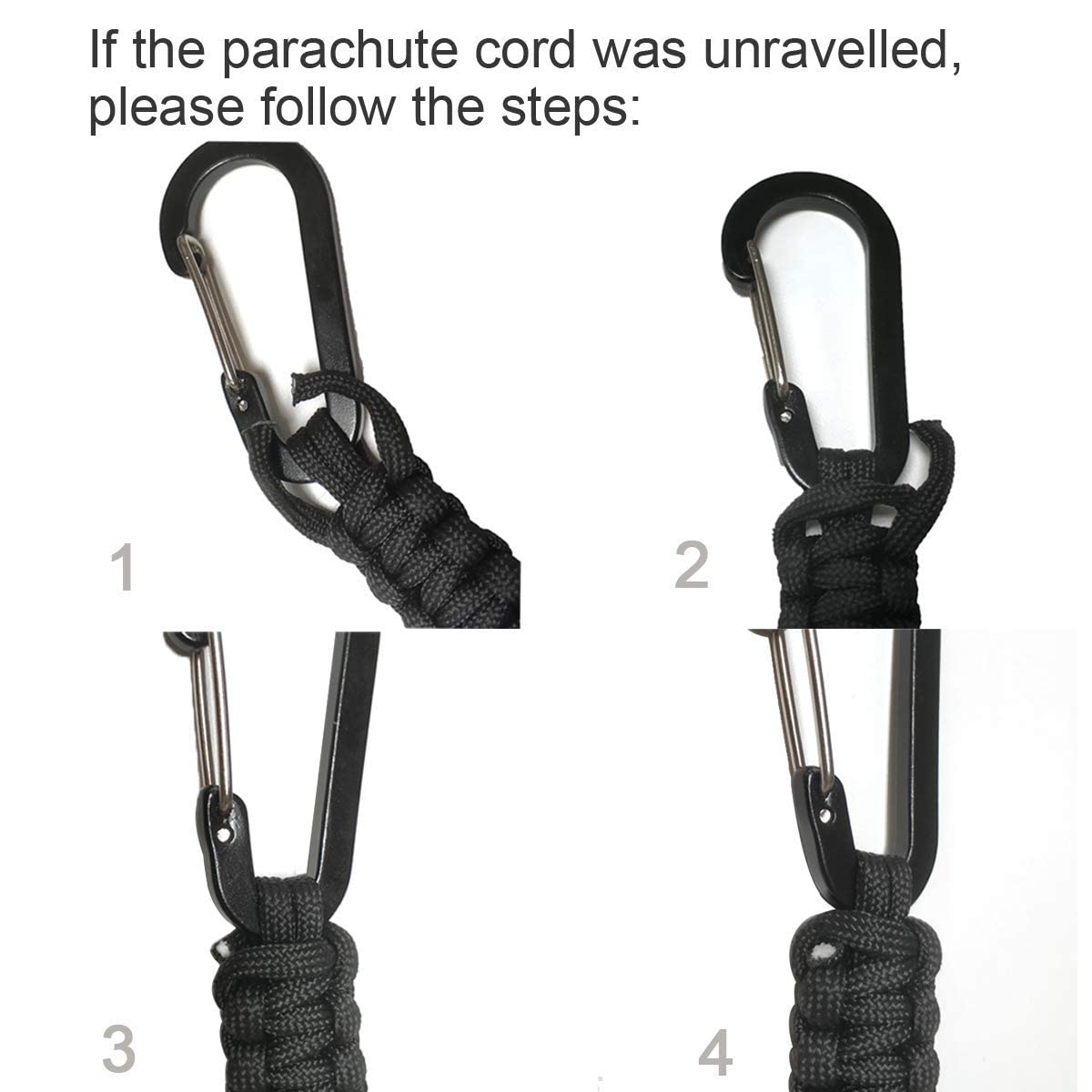 - Premium Paracord Keychain provide good secure for your Outdoor Essentials. The carabiner makes it easy to hang them up or clip them somewhere.