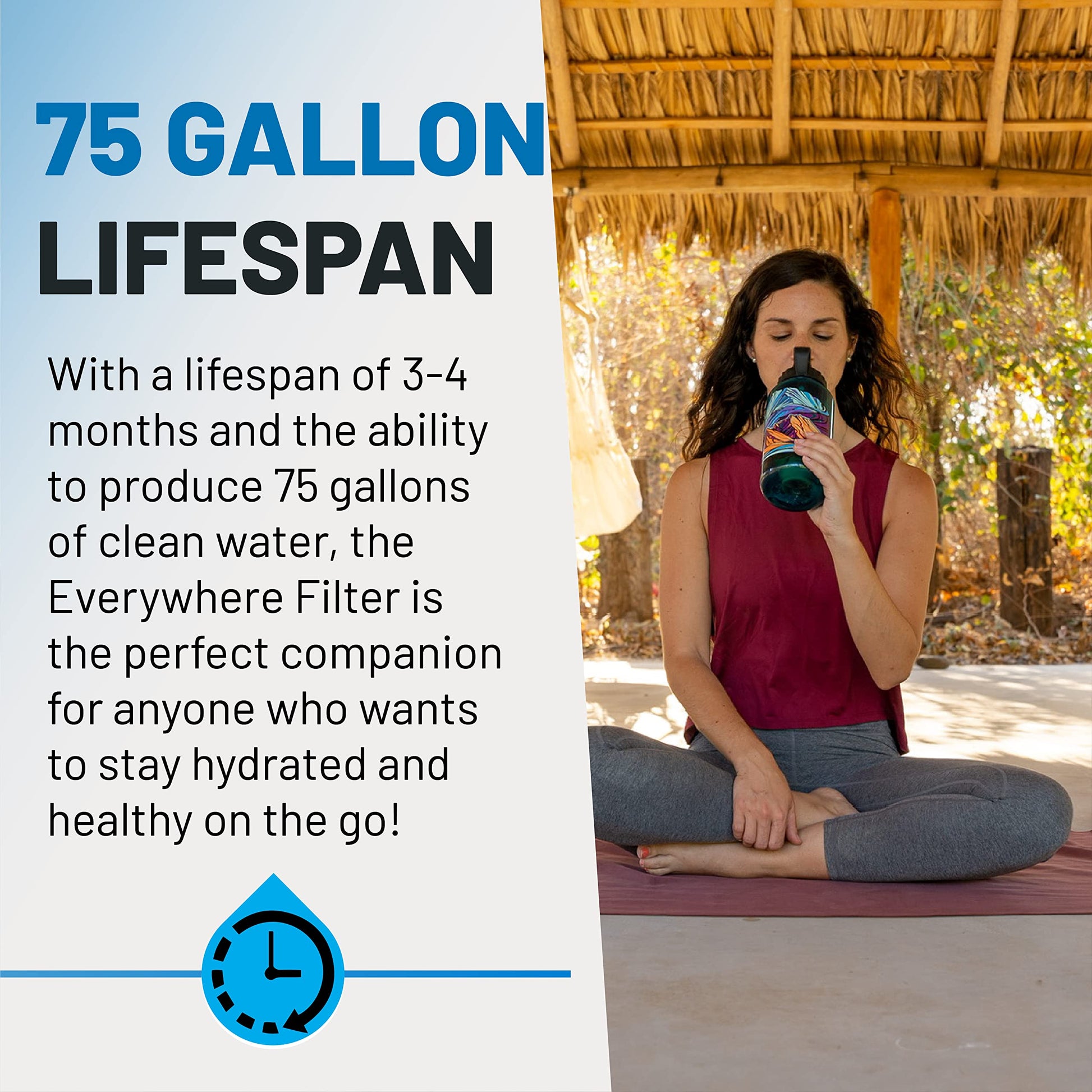 - FILTERED WATER BOTTLE (LEAD WATER FILTER): This Nalgene water bottle with filter uses depth & adsorption filtration to be the perfect water purifier. Adsorption removes particulates via the activated coconut carbon fiber mesh surface areas, which adsorbs contaminants such as cysts, heavy metals, chemicals & pharmaceuticals. Depth filtration (6mm thick) involves the removal of suspended waste products as they try to pass through the millions of layers of coconut carbon fiber block.