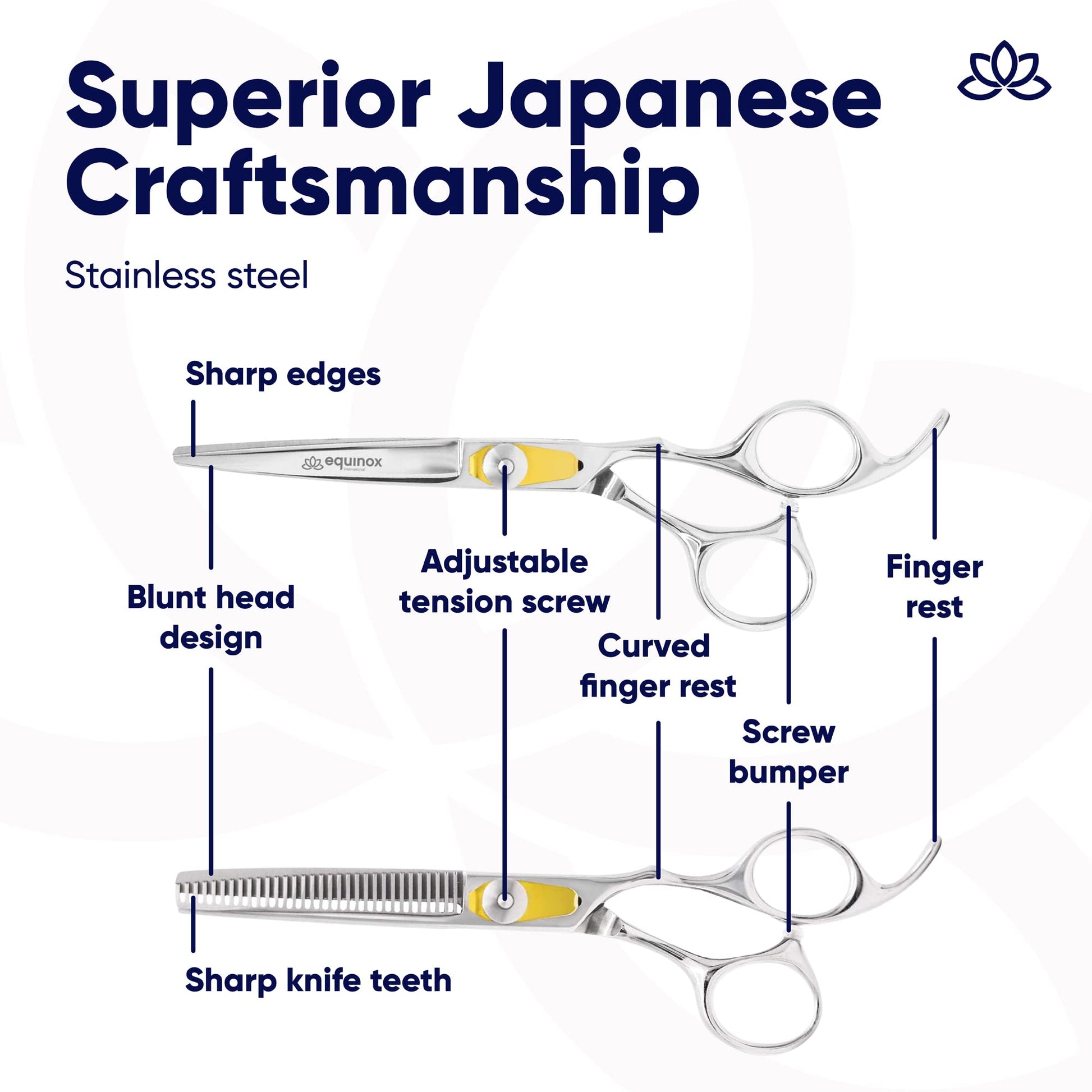Equinox Professional Hair Scissors Set - Includes Barber Scissors & Thinning Shears for Hair Cutting & Grooming, Premium Japanese Stainless Steel Hair Cutting Scissors, Barber Accessories & Hair Tools