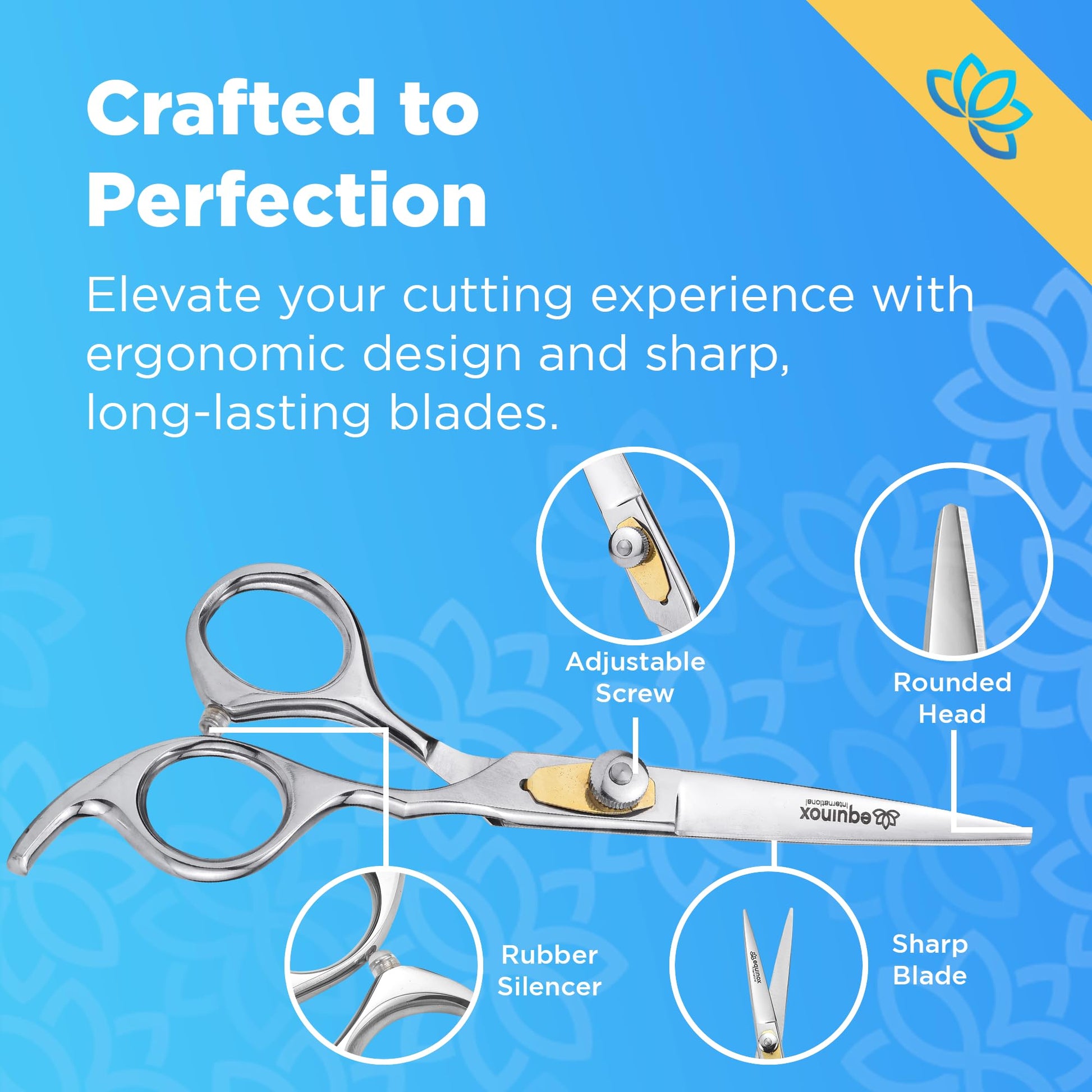 Equinox Professional Hair Scissors Set - Premium Barber Kit, Includes Hair Cutting Scissors, Thinning Shears, Straight Razor, Basic Comb, Cleaning Cloth, Oil & Sandpaper - Hair Salon & Barber Supplies