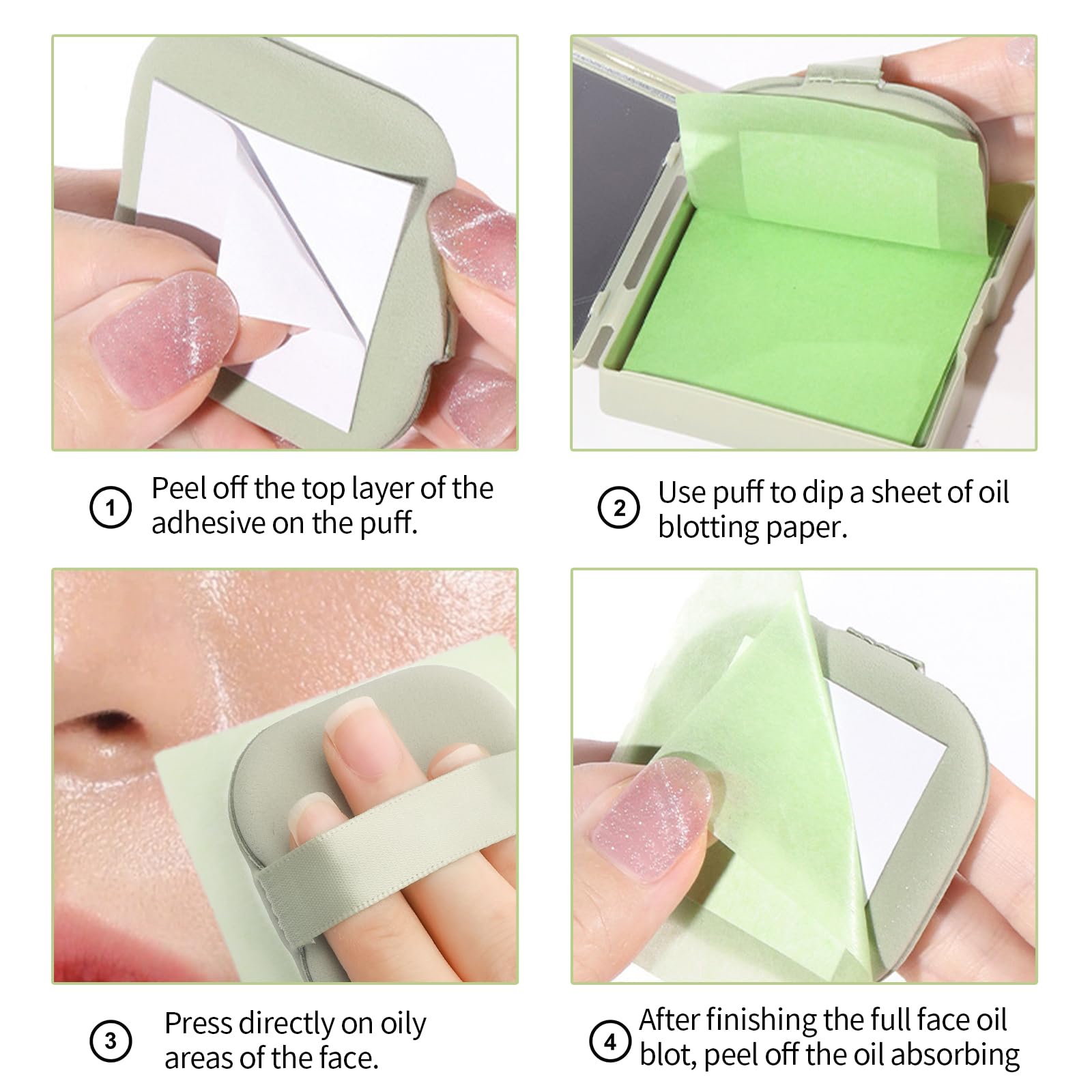 - 【MAKEUP FRIENDLY & PORTABLE】These facial oil blotting papers are small and compact enough to carry in your purse, with a built-in mirror and puff, so touching up your makeup on the go is a snap. Simply stick a piece of oil blotting paper with a puff and pat your skin, the easiest way to maintain a matte finish.