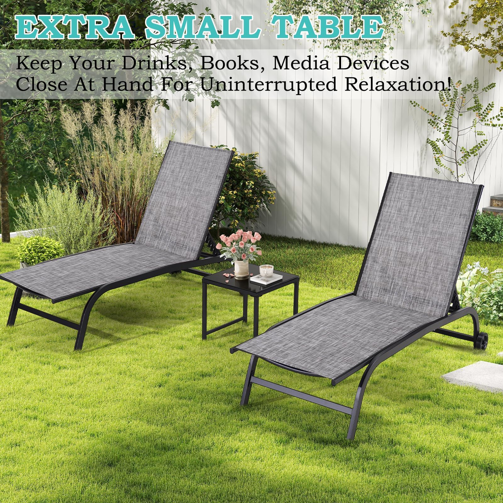 - 【SMOOTH ROLLING】Patio Chaise Lounge Set features easy-glide wheels and a lightweight frame, making it simple to move across patios, balconies, poolside, and beaches.