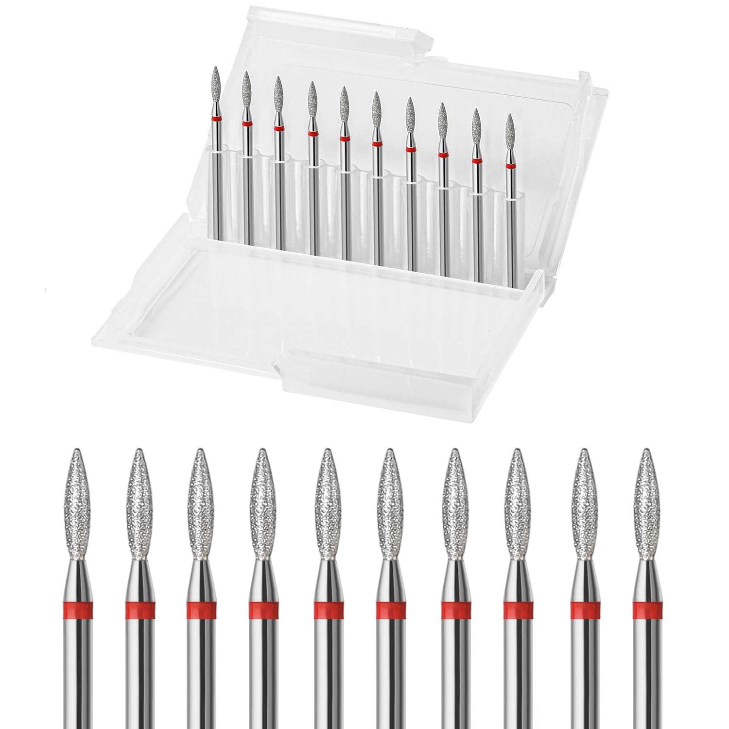 - ● 10pcs Diamond Flame Cuticle Drill Bits: Effortlessly remove dead skin, shape, and polish nails with this set of 10 diamond flame cuticle nail drill bits.