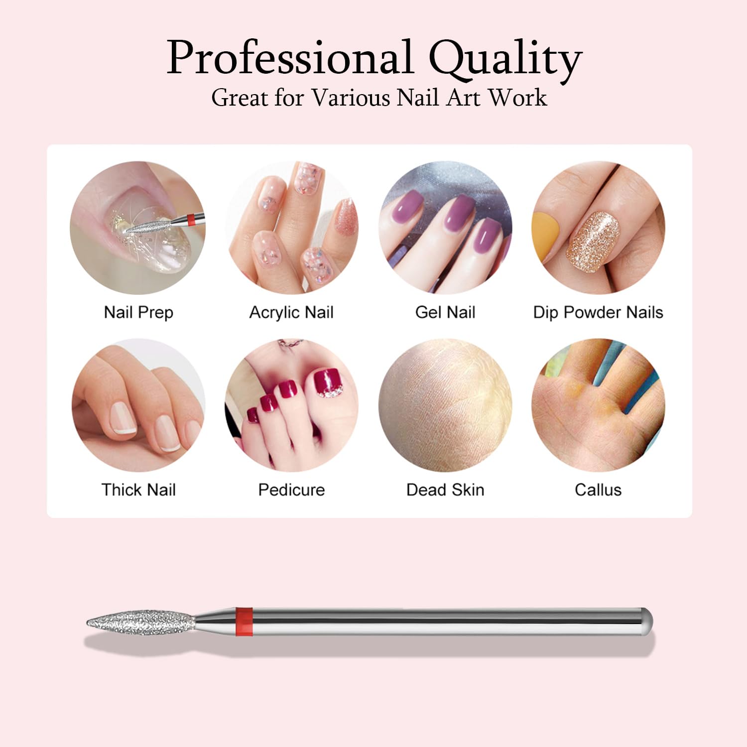 - ● Portable for Home or Salon Use: Small and lightweight, these nail drill bits are easy to store and install, making them an excellent choice for on-the-go nail care.