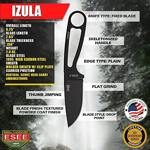 ESEE Izula – Fixed Blade Survival Knife with Molded Polymer Sheath and Clip Plate – Ideal for Survival, Camping, & Bushcraft - Made in the USA