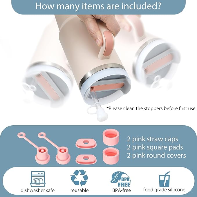 2 Set Spill Stoppers for Stanley Cup 20oz/30oz/40oz/64oz, Leak Proof Accessories for Stanley Tumbler with Straw Cap and Square Pad and Round Cover (Pink, 2)