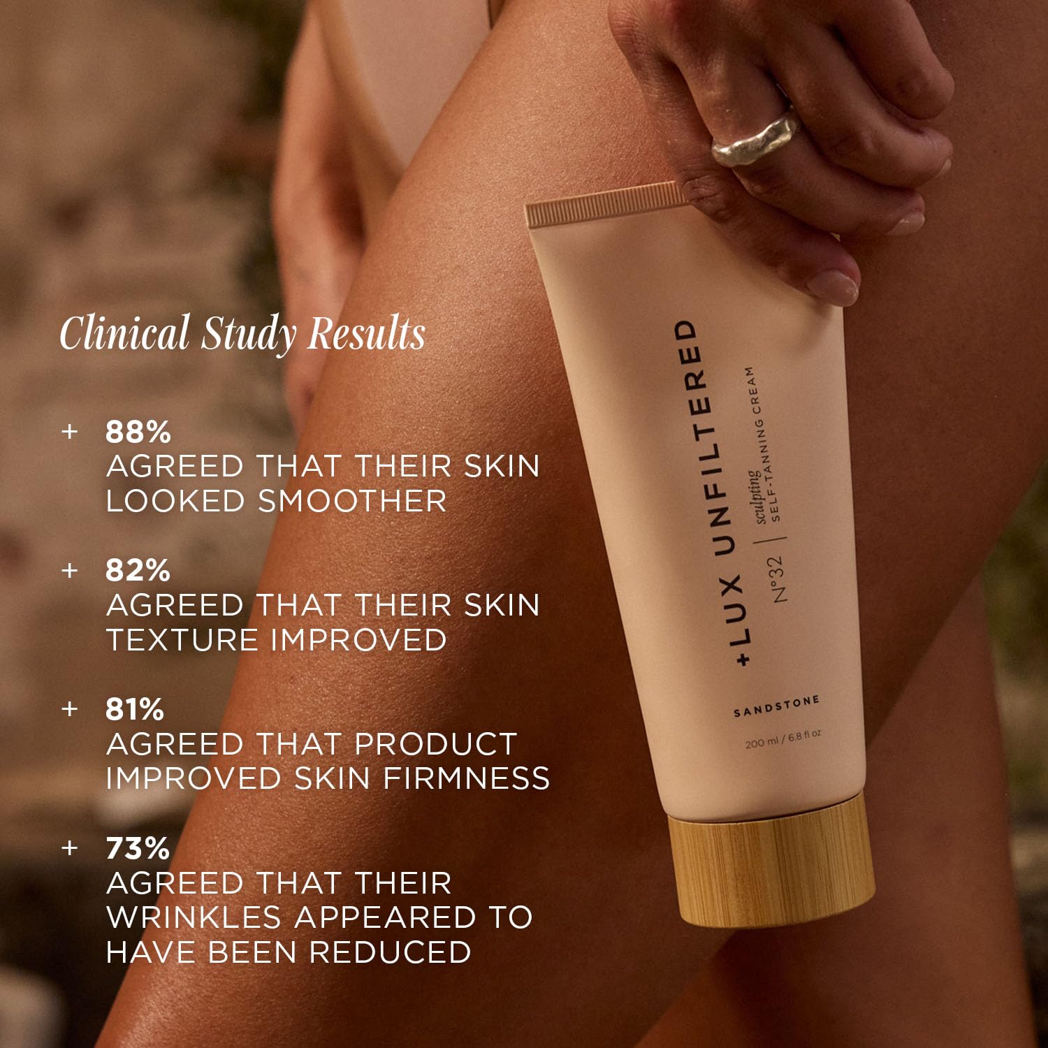+ Lux Unfiltered N°32 Sculpting Gradual Self Tanning Cream in Sandstone, Peptide Blend to Firm and Tone Skin, Hydrating Self Tanning Lotion, Gluten Free, Vegan + Cruelty Free Self Tanner
